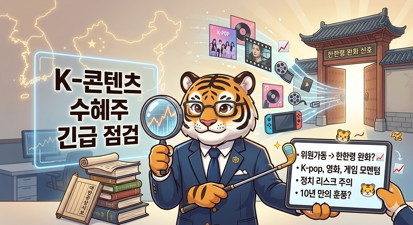 #한한령완화신호 #중국리오프닝 #K콘텐츠수혜주 #엔터주전망 #게임주판호 #지식재산권협력 #한중관계개회 #대만공상시보 #에스엠 #하이브 #스튜디오드래곤 #크래프톤 #아모레퍼시픽 #거시경제분석 #주식투자 #투자전략 #이코노호야 #호야스토리 #경제블로그